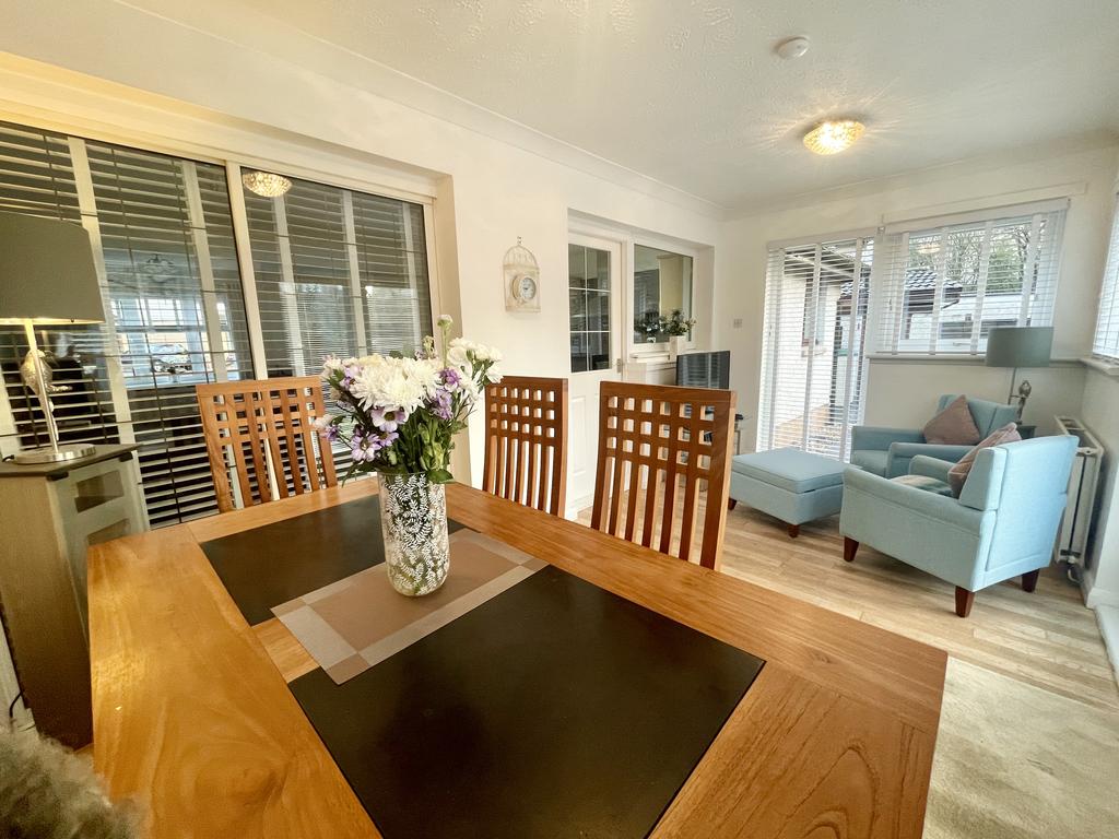 Real wood flooring, two windows to rear, window to side, French doors accessing rear gardens and feature lighting. Access to kitchen and lounge.