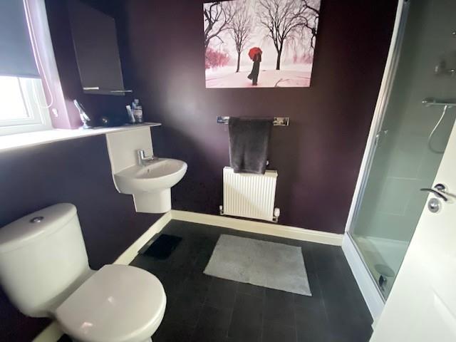 En-Suite - Shower enclosure , WC and wash hand basin, radaitro adn window to rar