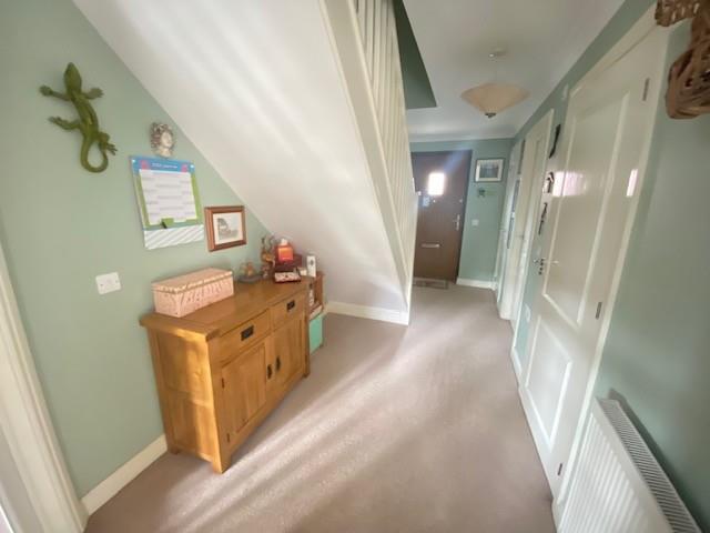 Reception Hallway - 2.28m max x 1.89 (7'5" max x 6'2") - Approached via an Oak effect front entrance door, stairs leading to the first floor and radiator. Doors off to all principal rooms including a useful built in cloaks cupboard and Cloakroom.