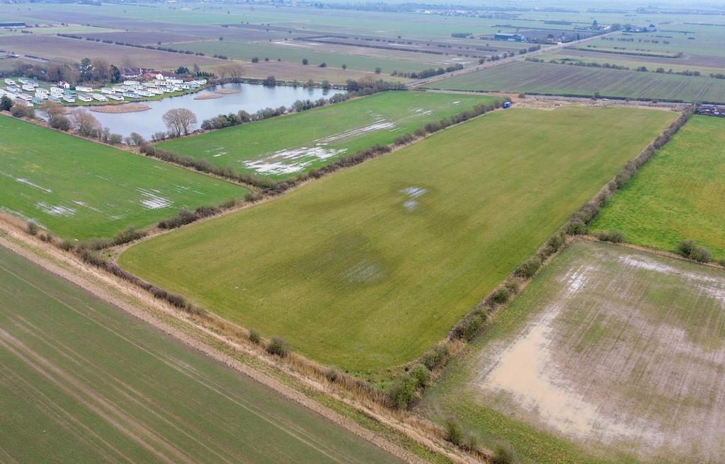 The land comprises a rectangular field with mature hedged boundaries currently set to grass.
