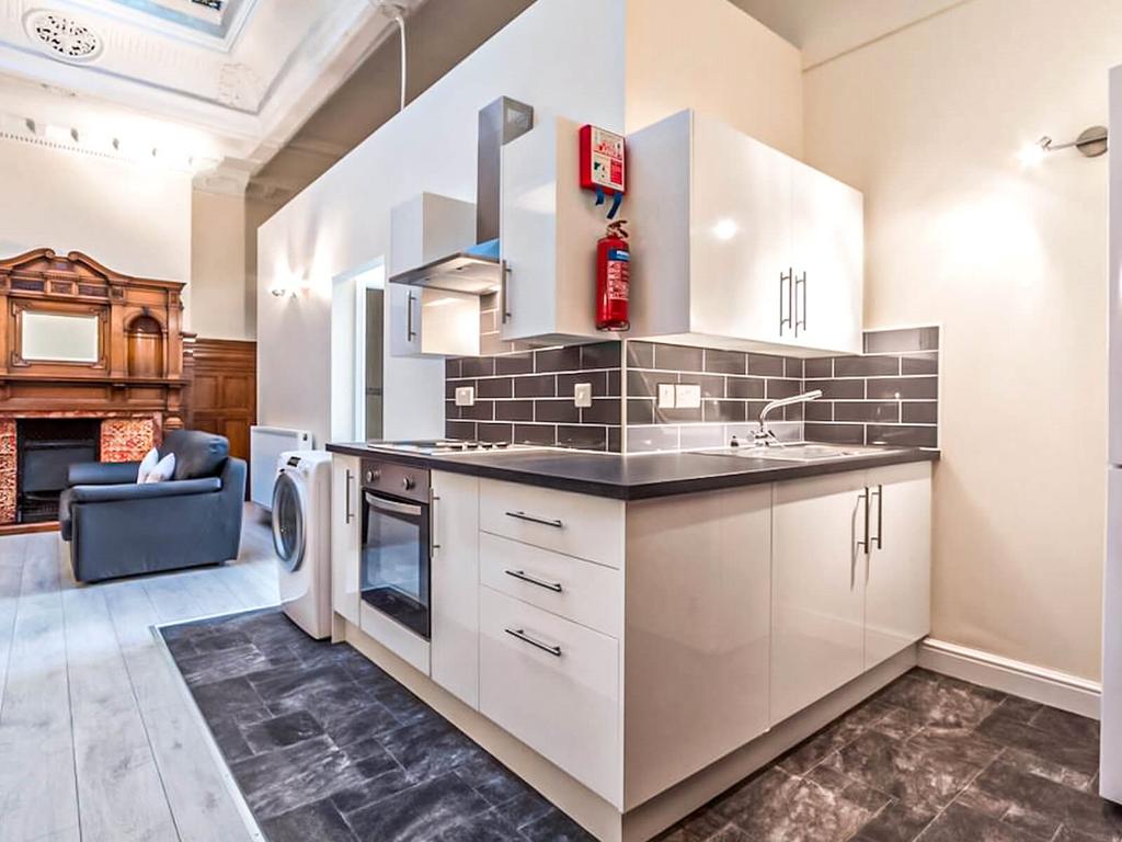 Make yourself at home at our Portland Place accommodation. This two-bed apartment beams with character and charm, from high ceilings, large, glass-painted windows to rich, vintage wooden furnishings throughout.