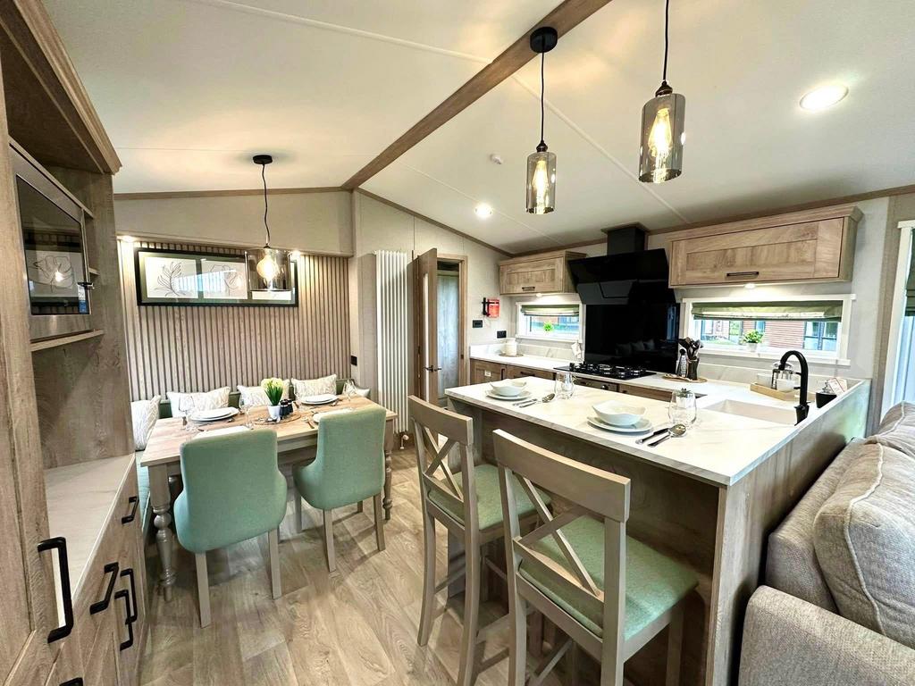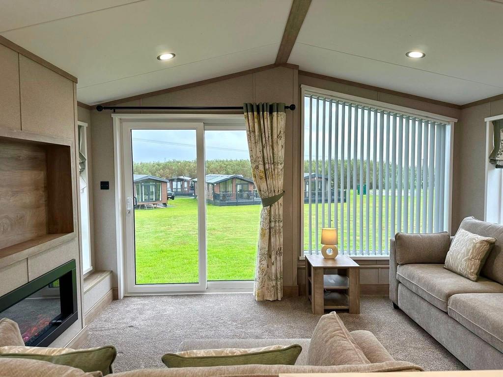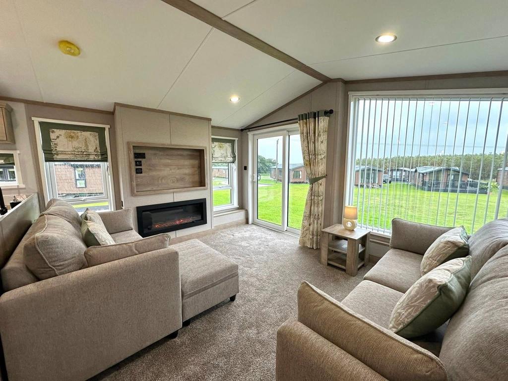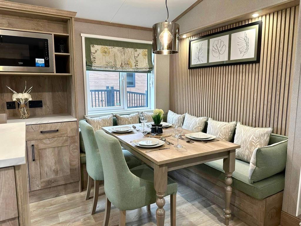 Wake up to breathtaking views, framed by the expansive front sliding patio doors. Step outside onto your private decking and enjoy the peace and quiet of the countryside. Inside, you'll find a beautifully appointed interior, boasting an integrated fridge-freezer, washing machine, dishwasher, and microwave – all designed for effortless living.