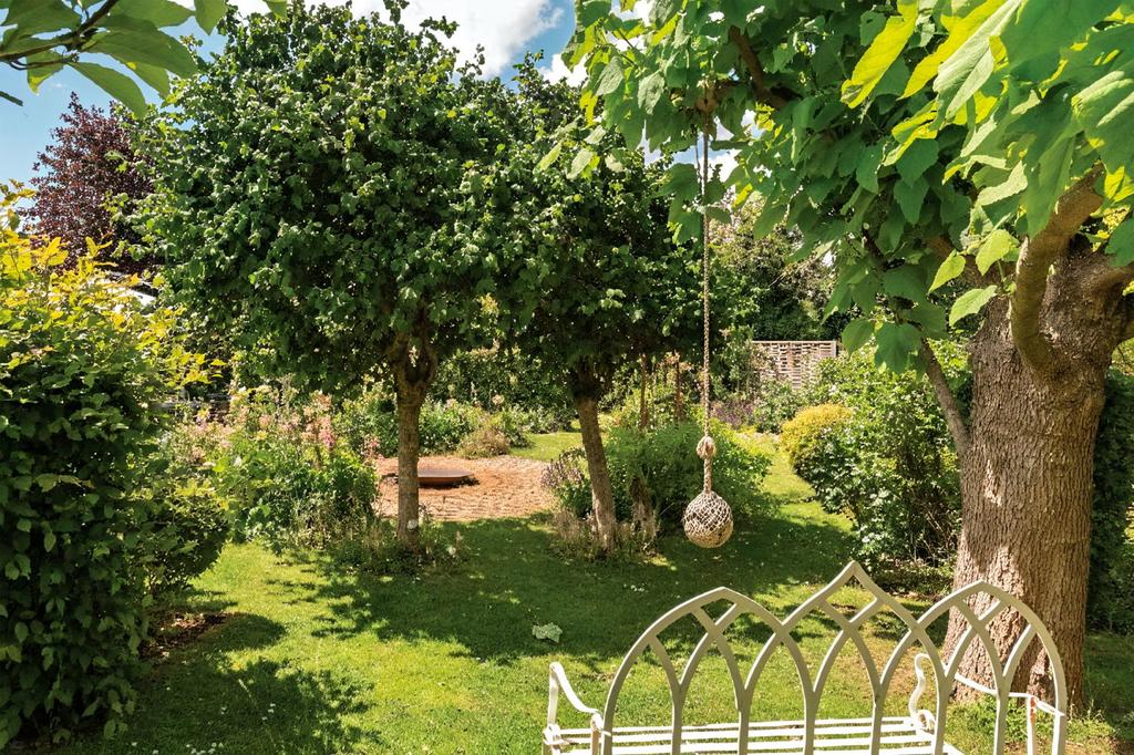 Outside, the verdant gardens are the perfect complement to the interior, with an expansive Indian sandstone patio extending from both the kitchen and sitting room, ideal for al fresco dining and entertaining. Raised herb beds, a charming pathway, and a selection of mature trees—including twisted hazel, Indian bean, and two magnolia trees—enhance the garden’s natural beauty, providing a serene, private escape. To the front, the property benefits from ample off-street parking and the convenience of an electric car charging point, together with a garden store.