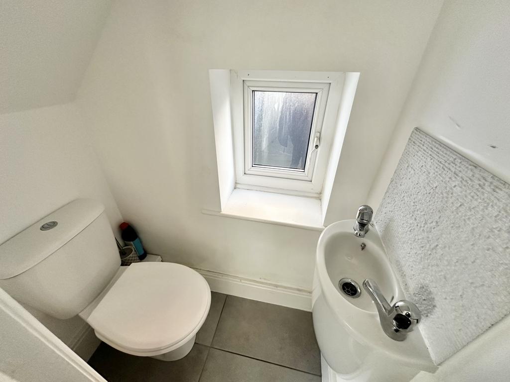 Two UPVC double glazed opaque windows to the rear aspect, three piece suite comprising; panelled bath with shower over, pedestal wash hand basin, low flush wc, cupboard housing boiler and heated towel radiator.