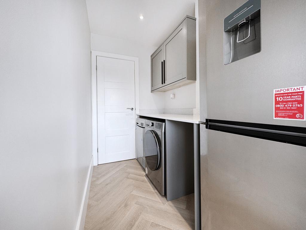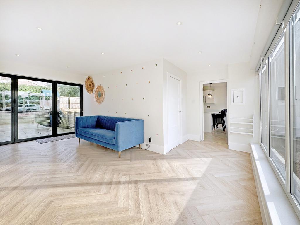 Off the corner of the kitchen, a doorway leads through to a utility & laundry room, along with a full aspect secondary living room. Full height glazing spans the full front aspect, whilst bifold doors span the rear.