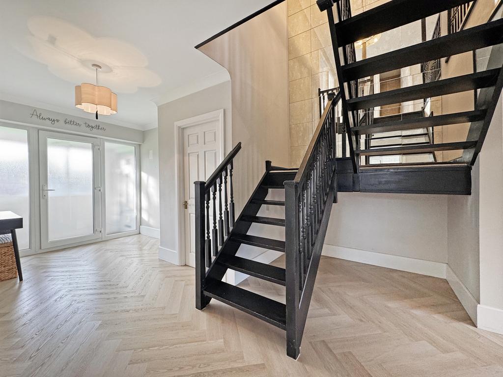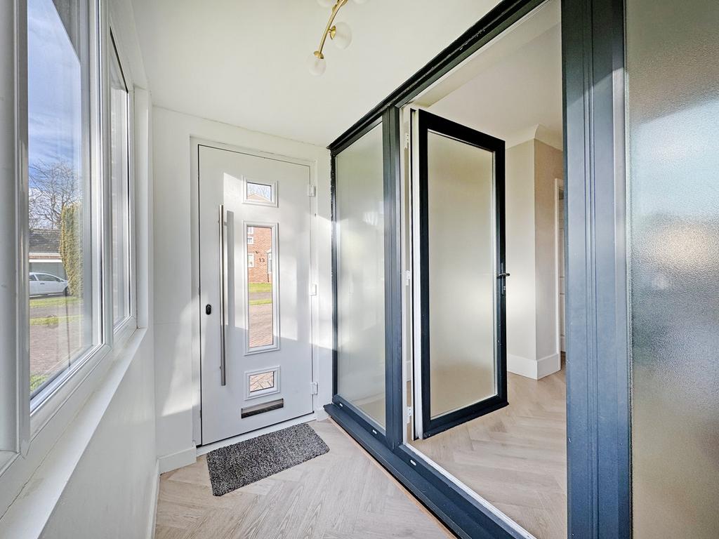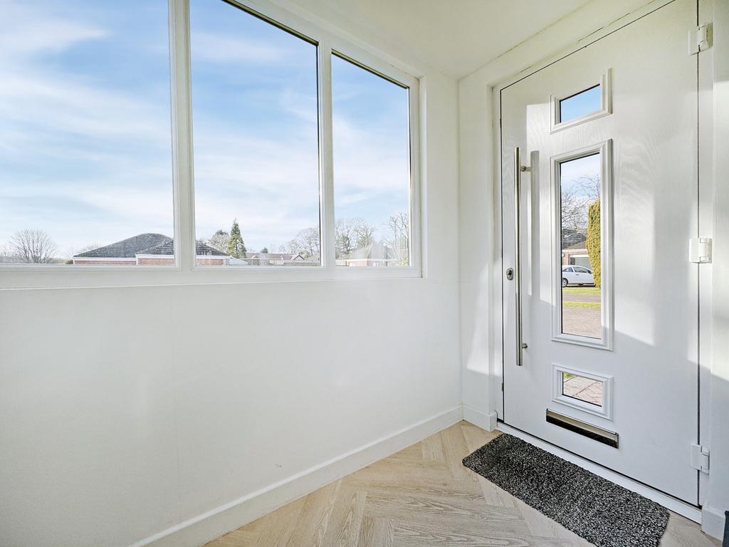 On arrival this impressive home oozes curb appeal with a predominantly white rendered façade, exposed brick porchway and grey anthracite windows. The home is complimented by a large front lawn, block-paved multicar driveway and private rear garden. The property can be accessed via two main entrances on the front aspect, the first being the brick porchway and the second leading directly into the kitchen.