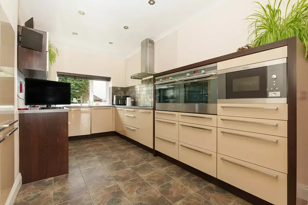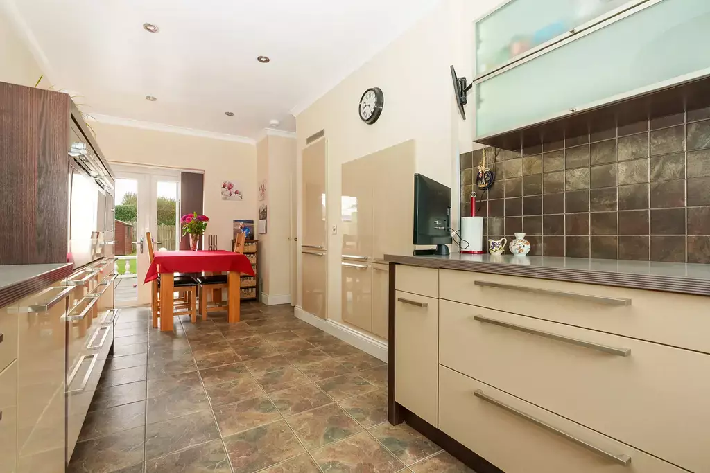 - Stylish modern dining kitchen with french doors to patio and separate utility room