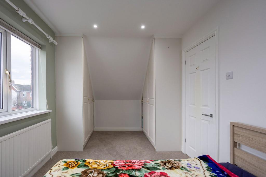 Upstairs, a spacious landing leads to five double bedrooms, each offering generous proportions and plenty of storage. The master suite is a standout feature, complete wall to wall built in wardrobes, and a superb contemporary en-suite that includes both a stand alone bath and a separate large walk in shower. Three of the remaining bedrooms also benefit from fitted wardrobes, ensuring a clutter-free space for every member of the household. The family bathroom is well-appointed, with a beautiful roll top bath, sink, and toilet providing convenience for busy mornings and relaxing evenings alike.