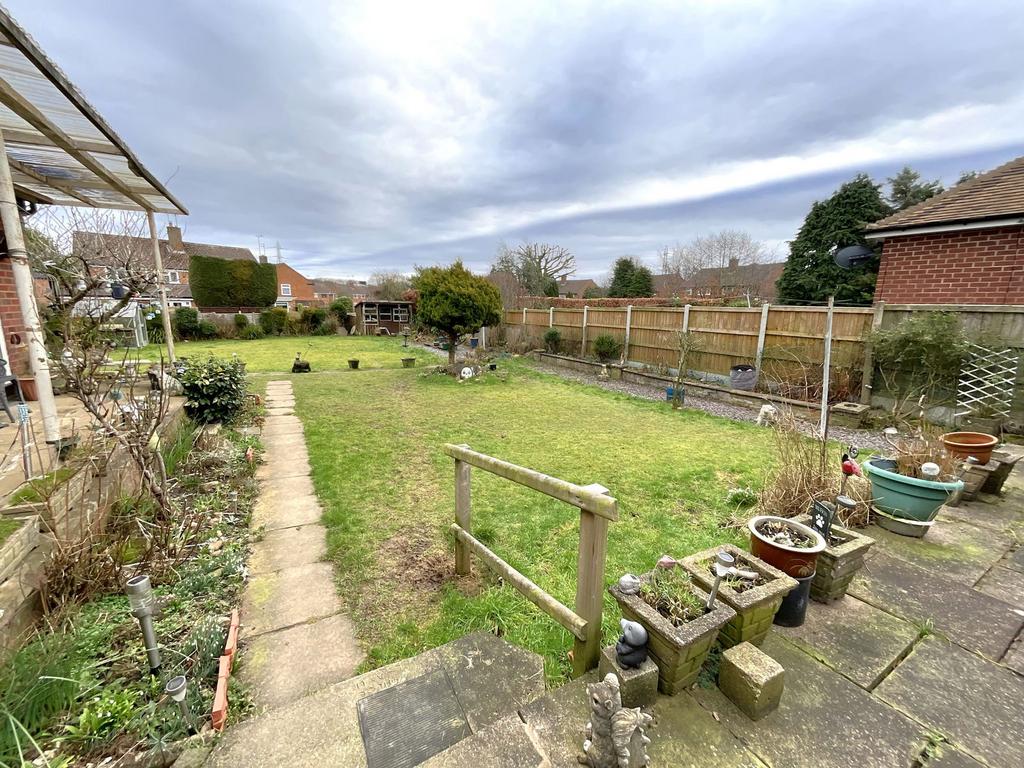 A VERY WELL PROPORTIONED DETACHED BUNGALOW in this respected address, Set back behind a service road and front garden with good size drive. Having gas central heating, PVC double glazing and LOVELY LARGE REAR GARDEN. - Entrance Hall, front Living Room with defined Sitting area and Dining area, good size Kitchen, Utility, Cloakroom with WC, Exceptional Rear Lounge with picture windows and sliding doors to the garden. THREE BEDROOMS, Shower Room, Large Garage. All main services connected, Tenure Freehold, Council Tax band F. EPC E. Broadband/Mobile coverage:. Construction, walls brick, mainly pitched tiled roof, flat felt to extension. Long term flood risk- surface water 0.1% to 1% pa. Rivers less than 0.1% pa.