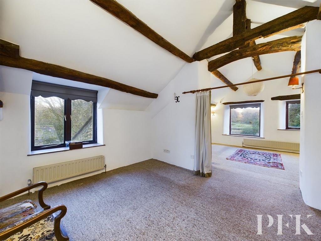 A large space with exposed ceiling timbers, radiator, doors leading to two further bedrooms and a shower room and open archway access into bedroom 1. Due to the available space on the landing, a buyer may wish to reconfigure the layout to include a fourth bedroom if required.