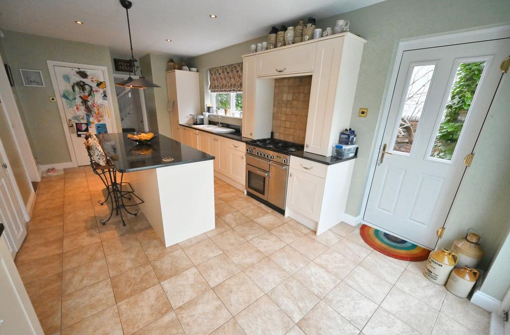 Fitted with an extensive suite of matching cream units comprising a range of base cupboards & drawers with granite worktops, matching central island with breakfast bar & base units, white ceramic 1.5 drainer sink unit, recess & gas point for double width cooker with extractor hood over, built in dishwasher, fridge & freezer, recessed ceiling spot lights, tiled flooring with underfloor heating, composite double glazed side door, double glazed windows to side, internal hardwood glazed billfold doors lead to conservatory and built in utility cupboard/ pantry with plumbing for washing machine, shelving & glaze window to rear. Access into basement storage: 13’1’’ (4.00m) x 5ft (1.53m)