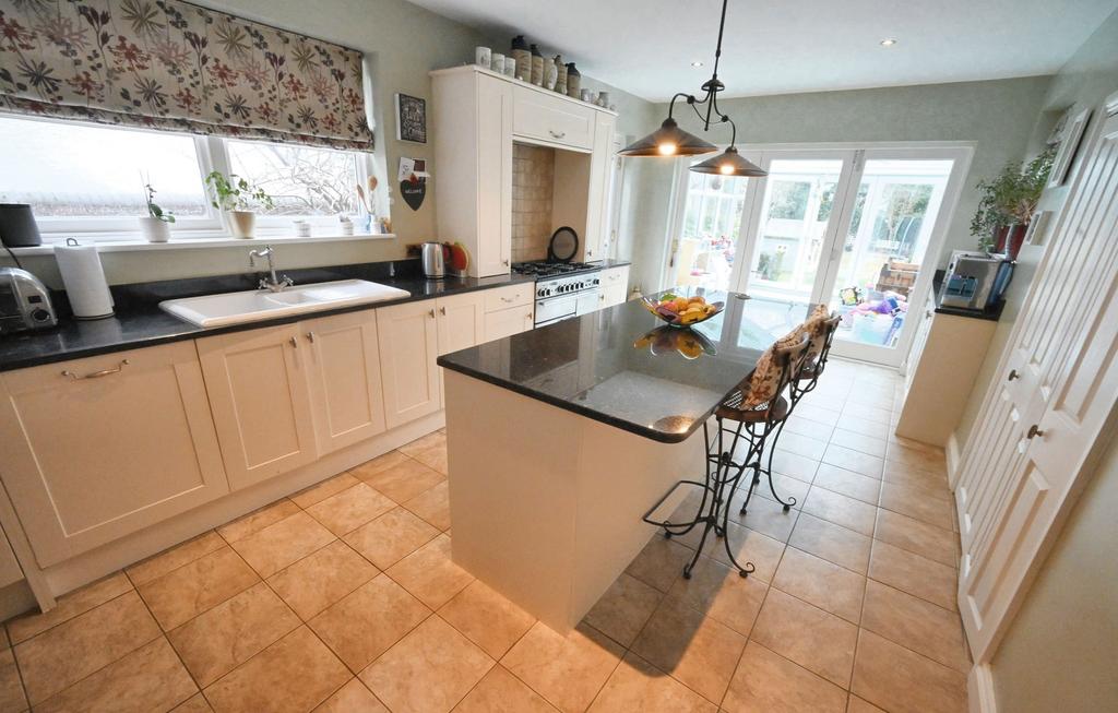 - Front living room, open archway to dining room & 25ft long breakfast kitchen with central island/ breakfast bar & bifold doors leading to the conservatory