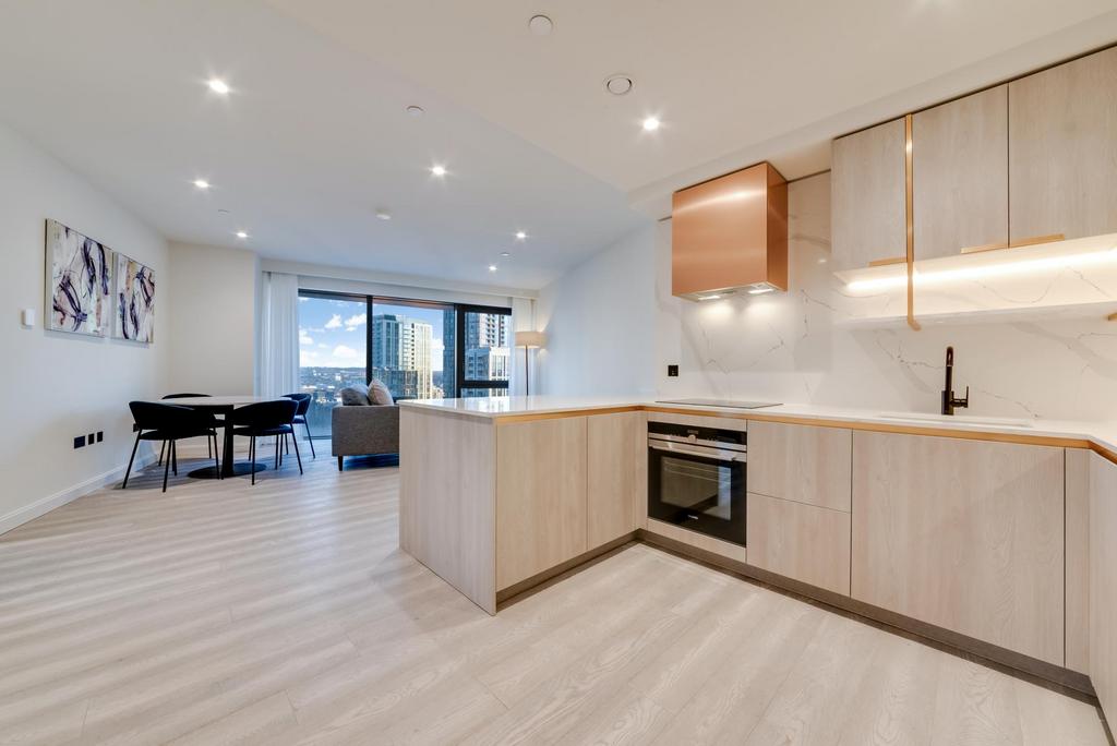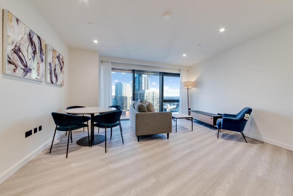 Two bedroom apartment in Aspen at Consort Place, E14. This elegant two bedroom apartment is located on a high floor and offers 854sq/ft of internal space with an East Facing aspect. The apartment offers an open plan kitchen/ living area with individually tailored bespoke cabinetry and engineered wood flooring, 2 double bedrooms (One ensuite) come with luxury carpets and built in wardrobes, marble effect bathroom, the apartment is finished to a high specification throughout.