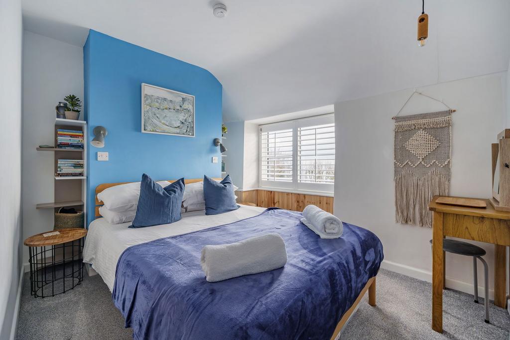 Double glazed window to front with opening shutters, from here lovely views over the bay to St Michaels Mount can be enjoyed. Loft access. Wall mounted electric heater.