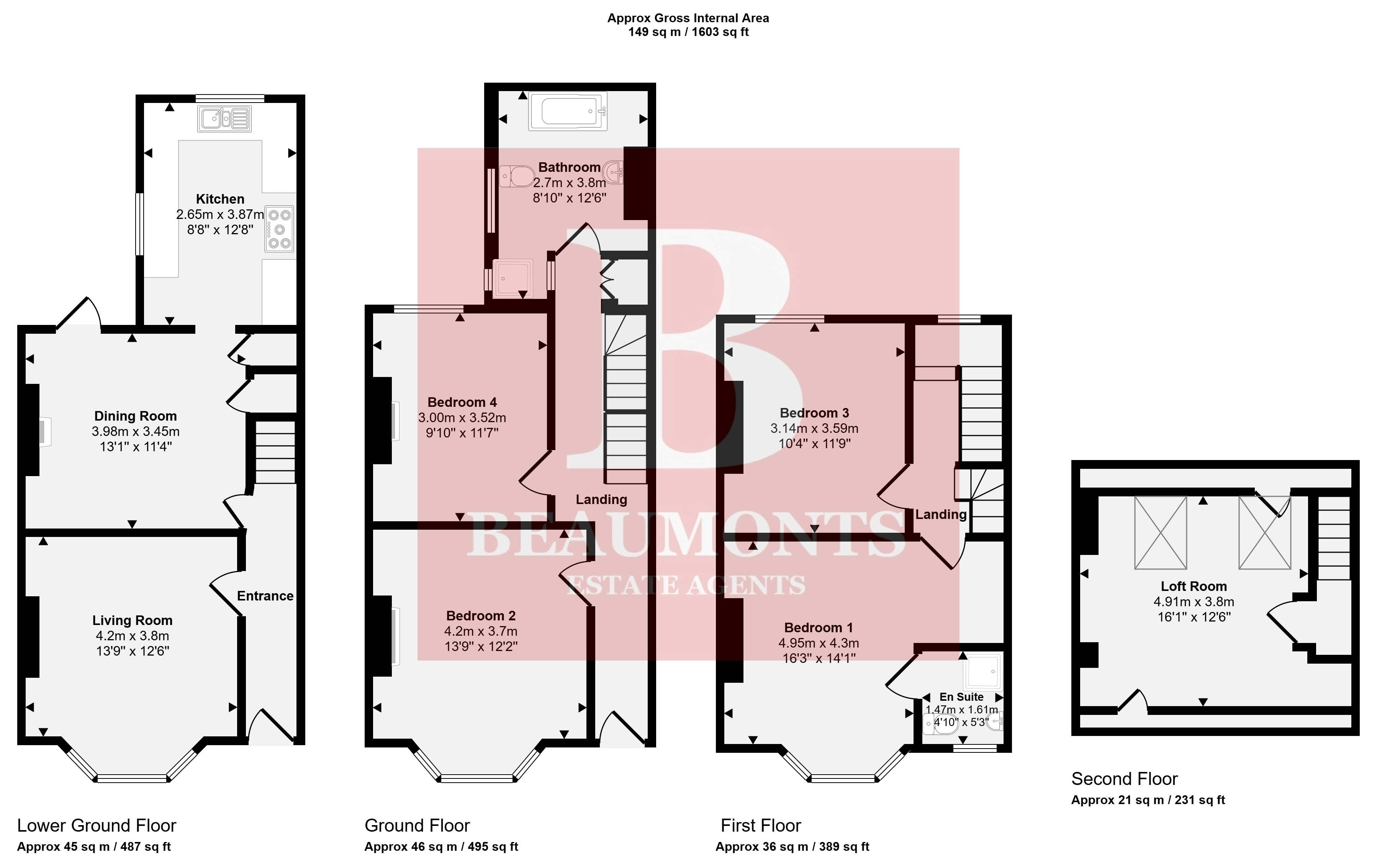 - With Four Double Bedrooms Loft Room (currently used as an office)