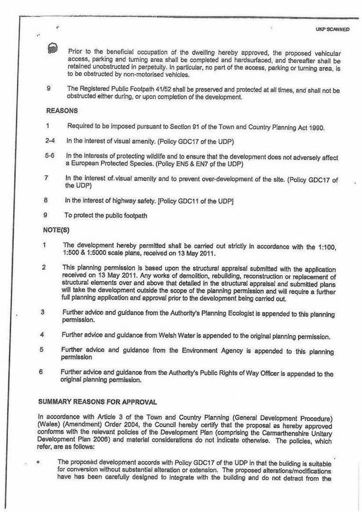Location - The barn enjoys a sligtly elevated location to take advantage of the wonderful surrounding scenery for which this area is renowned. It is approximately 7 miles from the A. 40 and the Country Market town of Llandeilo which provides a good range of amenities together with rail link on the 'Heart of Wales' line. The county administrative town of Carmarthen is approximately 22 miles and the M.4 motorway can be joined at Pont Abraham providing access to the University city of Swansea and of course is the main route to the rest of the country.