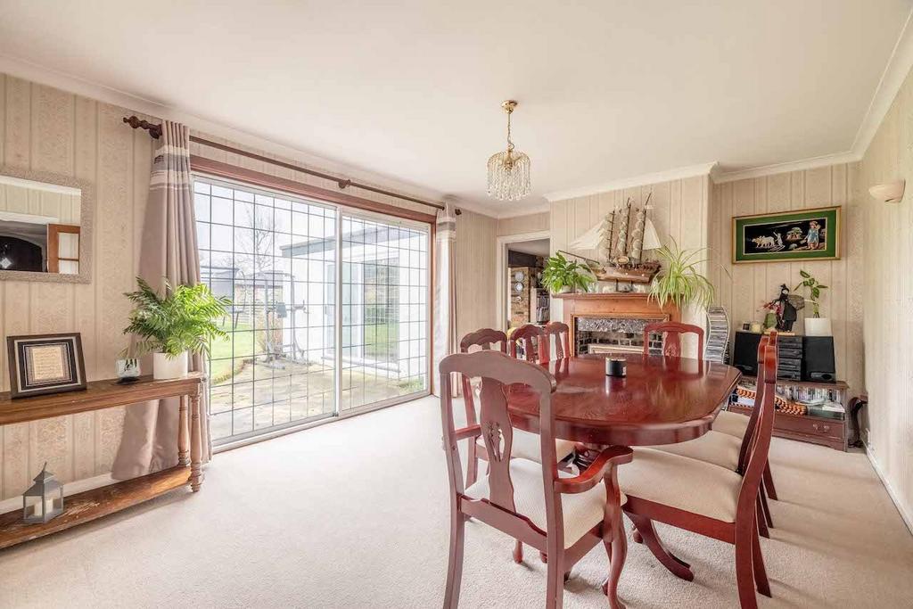We enter the property through the entrance hallway, where stairs rise to the first floor, and doors provide access to the front reception room, dining room, kitchen, and downstairs shower room. The front reception room features pendant lighting, a window overlooking the front aspect, ample space for a three-piece suite, and a carpeted floor. The downstairs shower room is fully tiled and includes a shower, low-level WC, hand wash basin with mixer tap, and a towel rail. The kitchen is well-equipped with pendant lighting, a window overlooking the side aspect, a combination of wall-mounted and base units, a range-style cooker with an extractor fan above, a stainless steel sink with a drainer, and space for a fridge/freezer and dishwasher. There is also room for a dining table and chairs, with sliding doors leading to the garden. The dining room is generously sized and features both pendant and wall-mounted lighting, sliding doors to the garden, a door leading to the living room, and space for a dining table and chairs. The living room is spacious, with sliding doors opening to the garden, a window overlooking the garden, ample room for a three-piece suite, and a carpeted floor.