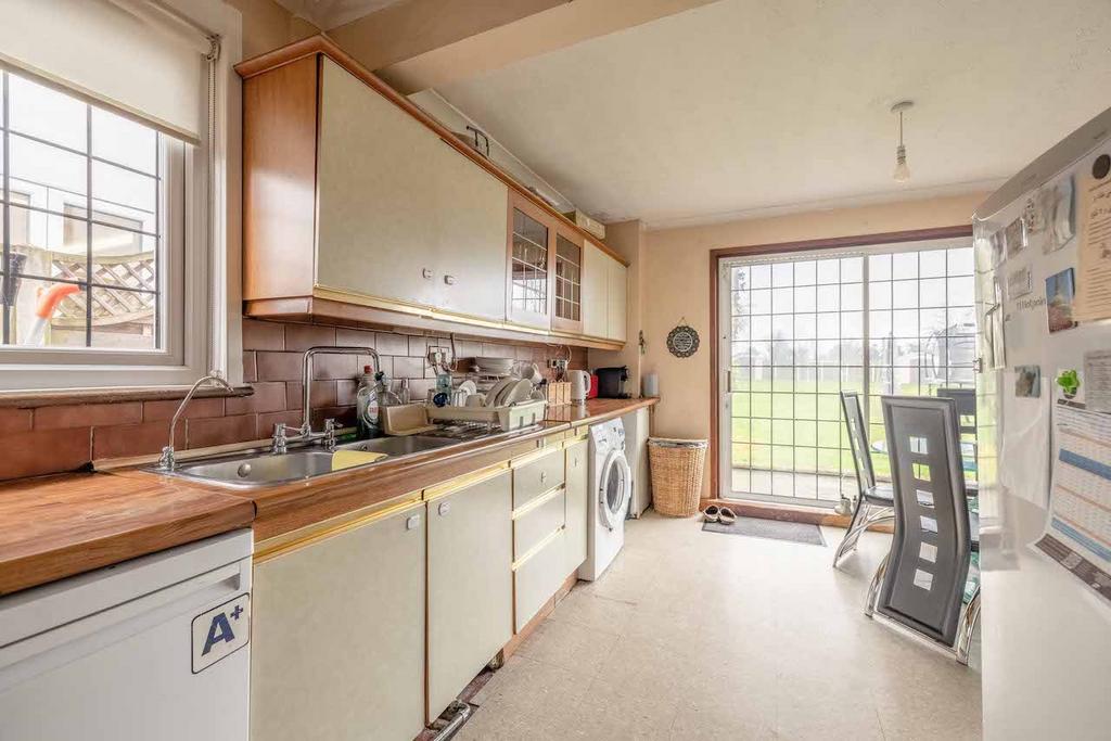 On the first floor, Bedroom One includes fan lighting, a large window overlooking the rear garden, space for a king-sized bed, built-in wardrobes, and a carpeted floor. Bedroom Two features fan lighting, a window overlooking the front aspect, space for a king-sized bed, built-in wardrobes, and carpeting. Bedroom Three has fan lighting, a window with views of the rear garden, a built-in wardrobe, and a carpeted floor. Bedroom Four offers a window overlooking the front aspect and space for a single bed. The fully tiled family bathroom includes a hand wash basin with a mixer tap, a bath with a shower attachment, a low-level WC, and a window overlooking the side aspect.
