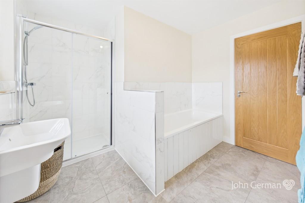 There are three further attractive bedrooms, of which bedroom four could equally serve as an office and has fitted wardrobes/storage. They are all served by an attractive good quality contemporary bathroom which has a bath in tiled surrounds together with a separate tiled shower with glazed enclosure, wall hung wash hand basin and integrated WC, chrome heated towel rail and tiled flooring.