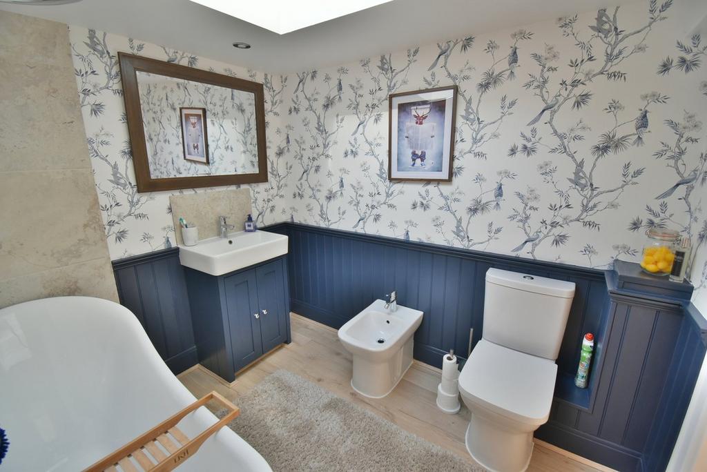 • En suite bathroom – a luxurious Victorian style en suite bathroom with free standing claw foot dual ended bath and shower attachment, WC and vanity unit with wash hand basin, bidet and part tiled walls, ceiling light window providing excellent light, door to utility room