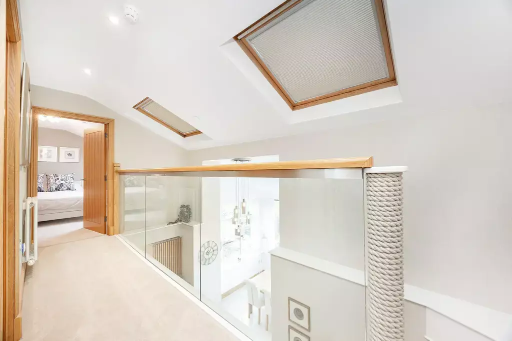 - Feature curved contemporary staircase with stunning glazed galleried landing