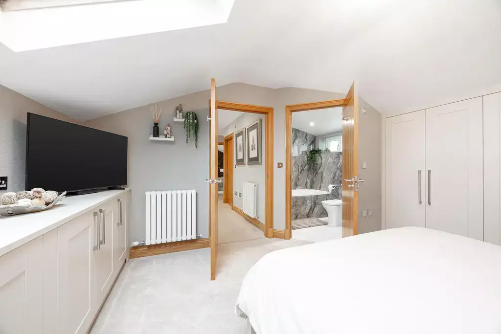 The first floor comprises of two spacious double bedrooms, both complemented by stylish fitted wardrobes and storage, alongside a luxury en-suite bathroom and a modern shower room, both installed in 2024.