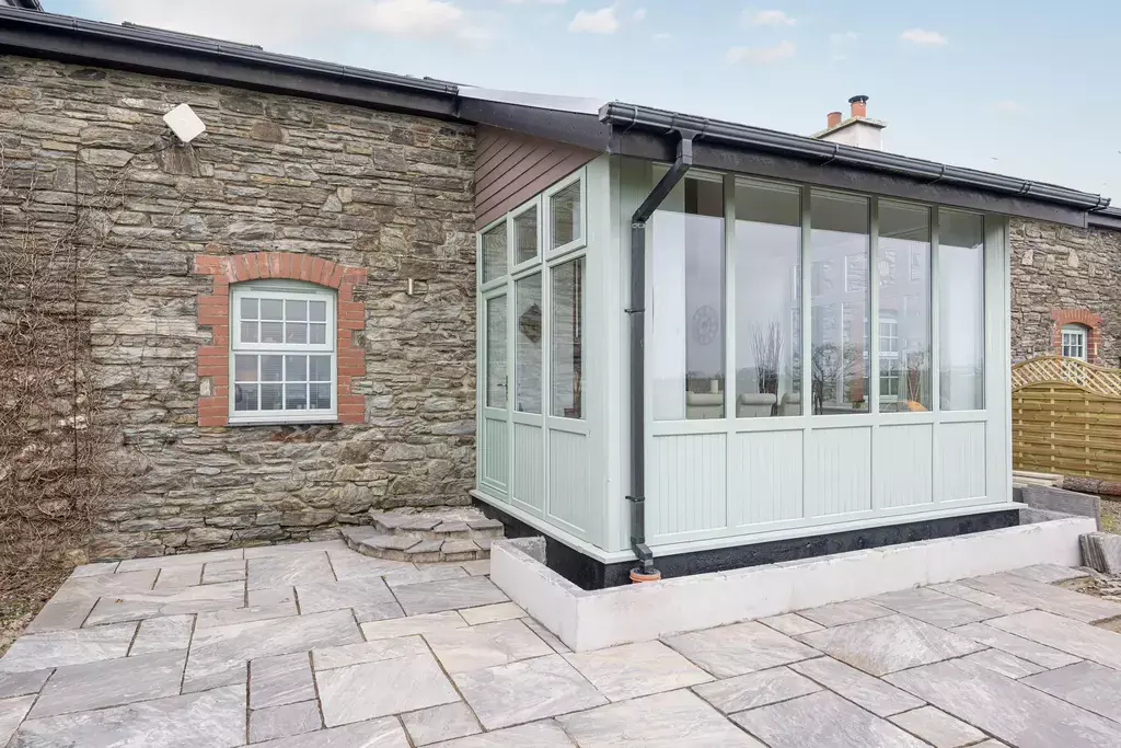 - Welcoming grand entrance leading to an impressive open plan sun room with delightful rural vistas, living room with feature exposed Manx stone wall and a stylish kitchen with utility room