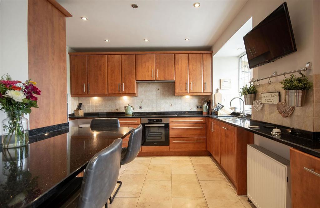 The breakfast kitchen features wall and base units, integrated appliances, a door leading to the rear garden and a door leading to the garage. To the first floor you will find four generous bedrooms, all providing generous storage and two modern family bathrooms