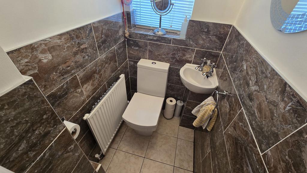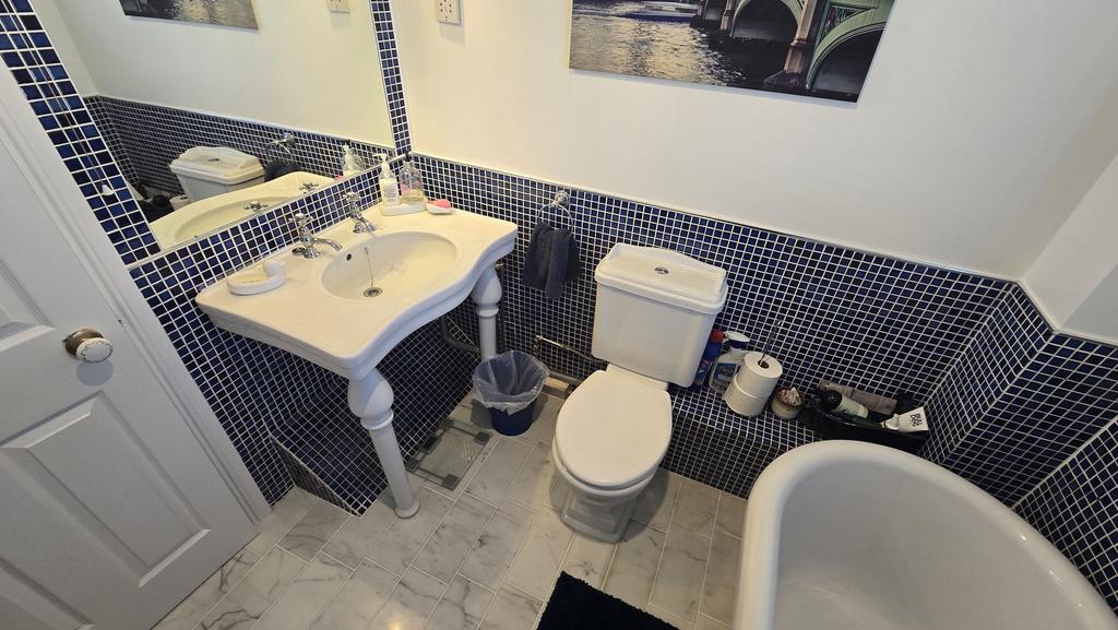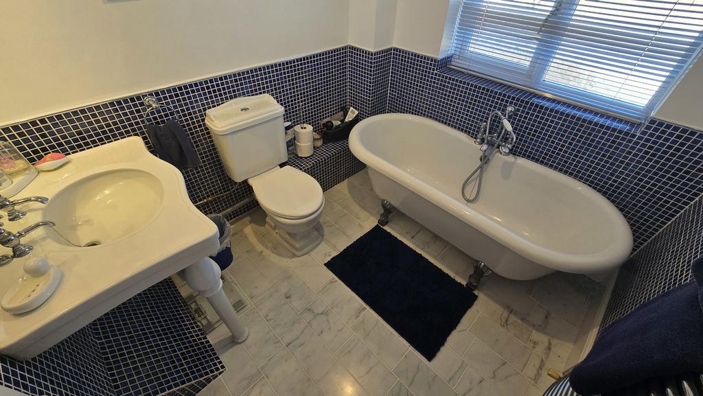 Front aspect UPVC double glazed window. GCH towel radiator. tile flooring. Roll Top bath, Hand basin and low level W/C