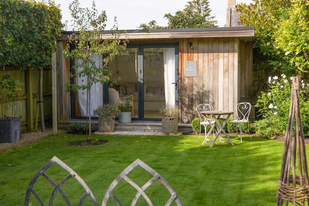 A wooden framed garden office/potential third bedroom with bi-fold glazed doors offers flexible and useful extra accommodation.