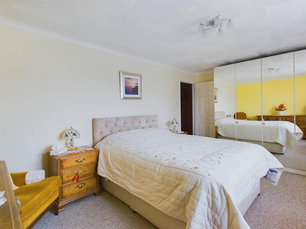 Double bedroom with deep wardrobe with hanging rail and storage space. Radiator and uPVC double glazed window to the front elevation,