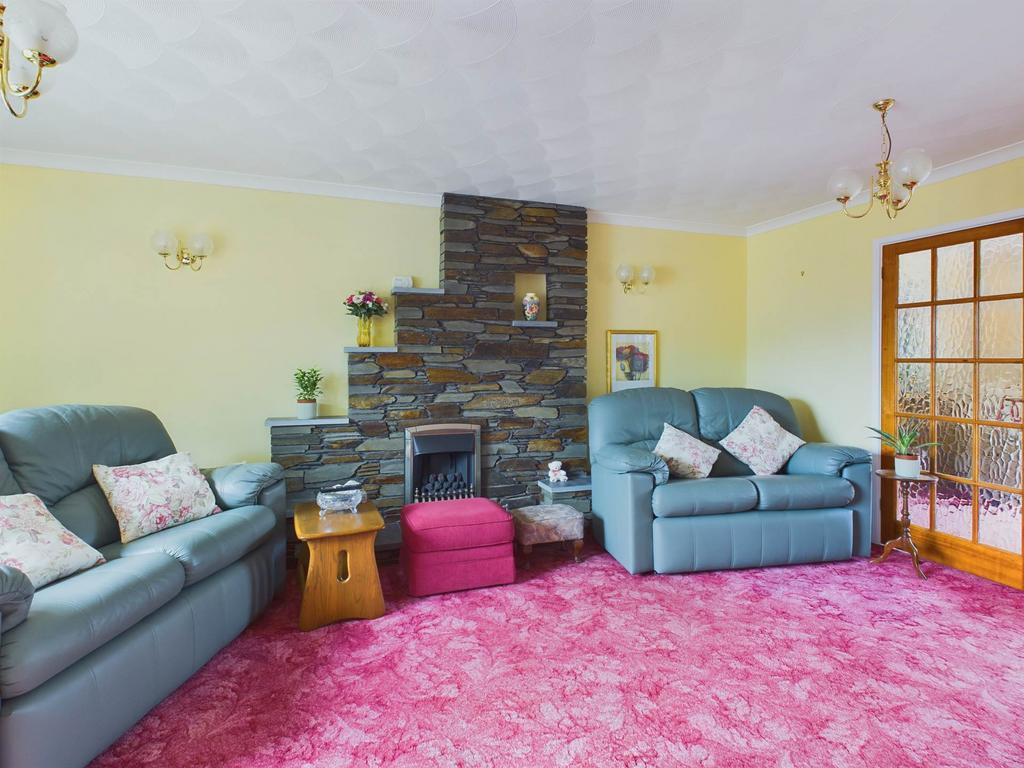 The main feature of this room is the Slate and stone fireplace with inset Living flame, coal effect gas fire, set on a slate hearth, with display niches. uPVC double glazed window to the front elevation, radiator. Internal French doors with inset glass detail give access to:-