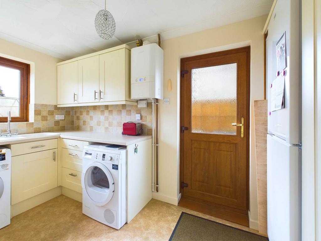 Comprising wall and base units, roll top work surfaces and drawer space. One and half bowl sink unit with drainer. Under unit space and plumbing suitable for washing machine and tumble dryer and further room for white goods. Central heating and hot water boiler. Coat hanging cupboard with shelving, coat hooks and storage space.. uPVC double glazed door gives access to the side of the property.