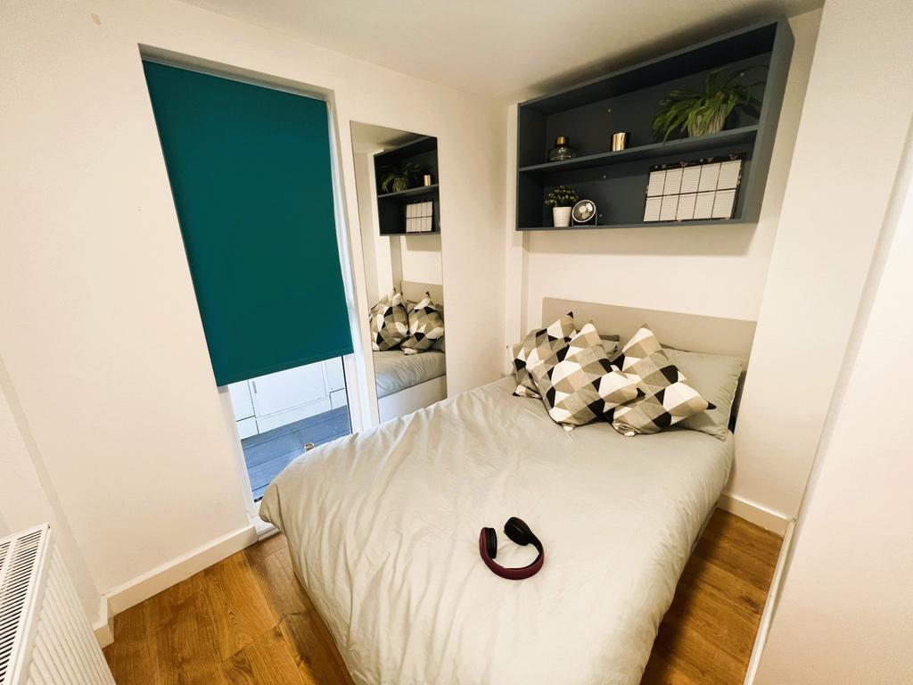 Our ensuite rooms at The Cube are fully furnished with a small double bed, complete with underbed storage, wardrobe, full length mirror, individual study area and private bathroom.