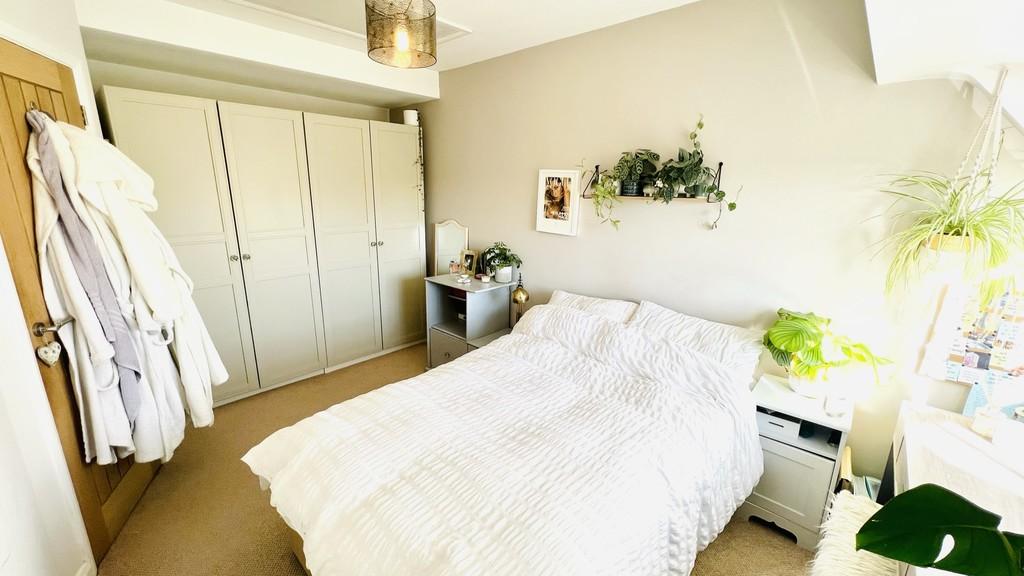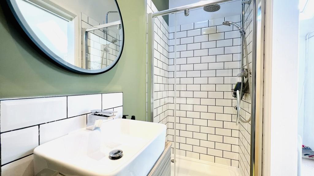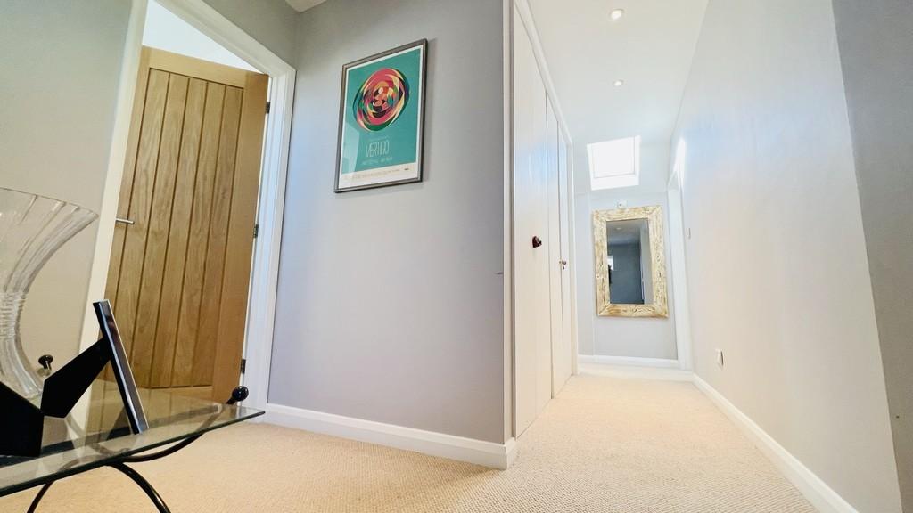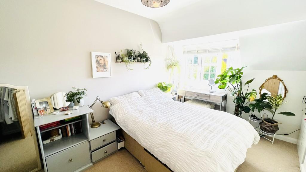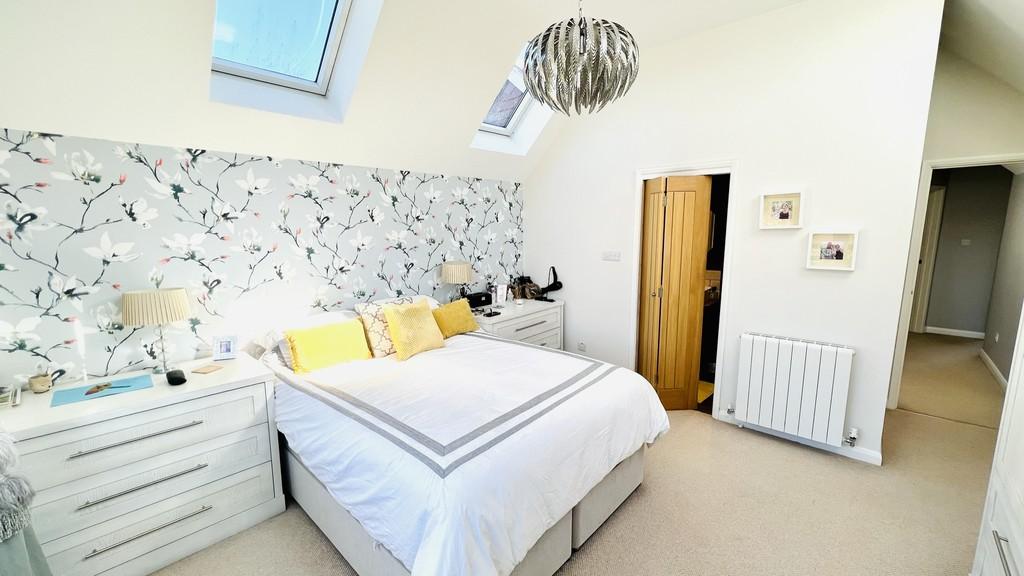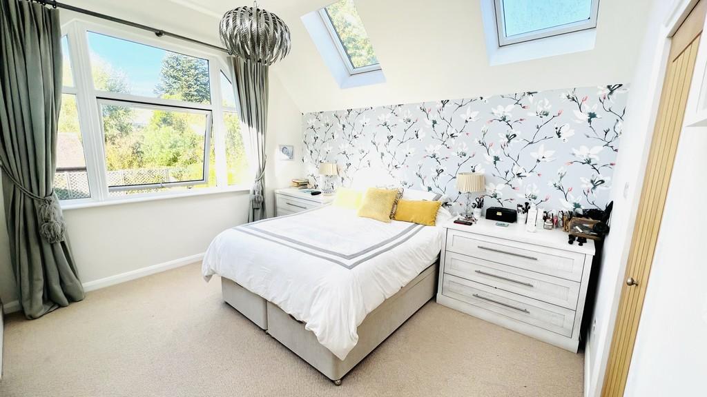 The master suite has a wonderful full height picture window, which overlooks the rear garden, with a fantastic, vaulted ceiling and skylights. Built in bedroom furniture with wardrobes and vanity desk. Ensuite shower room with tiled shower, WC and hand basin.