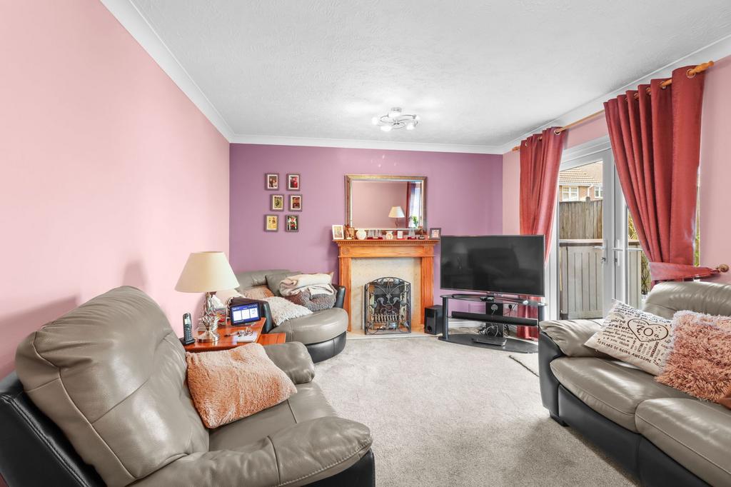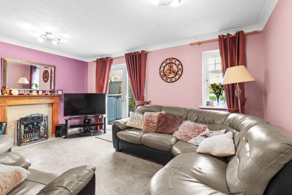 4.70m(15ft5) x 3.49m(11ft5). Double glazed window to rear, double glazed French doors to rear opening to rear garden, gas fire with decorative surround, radiator.