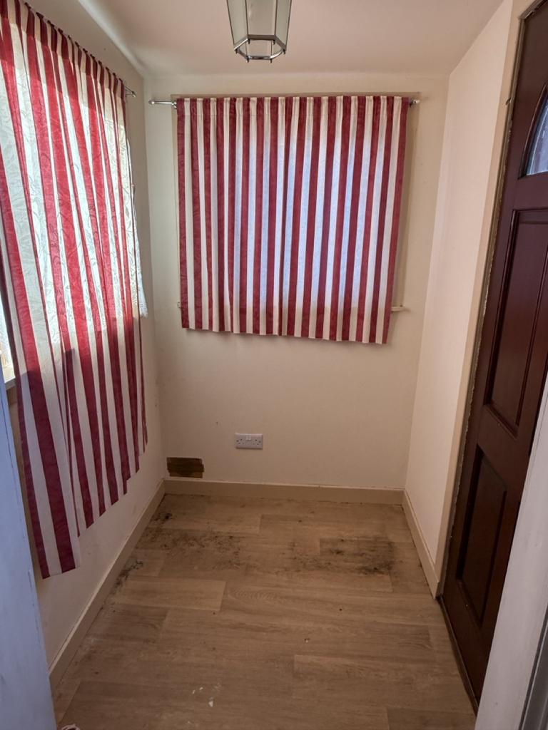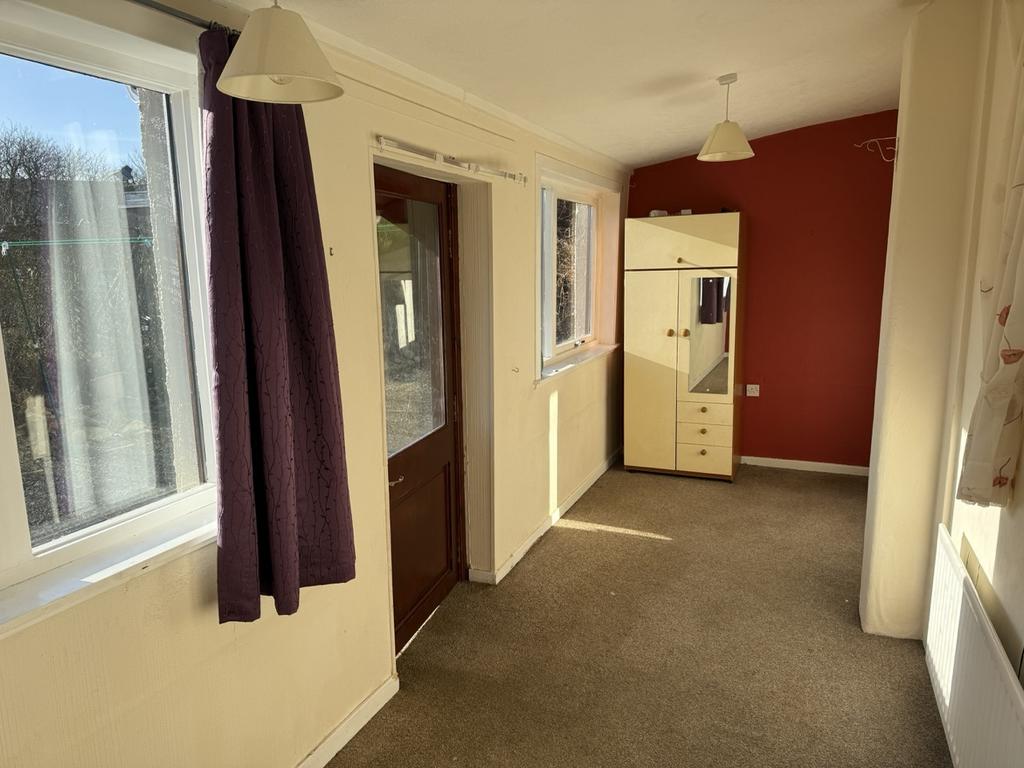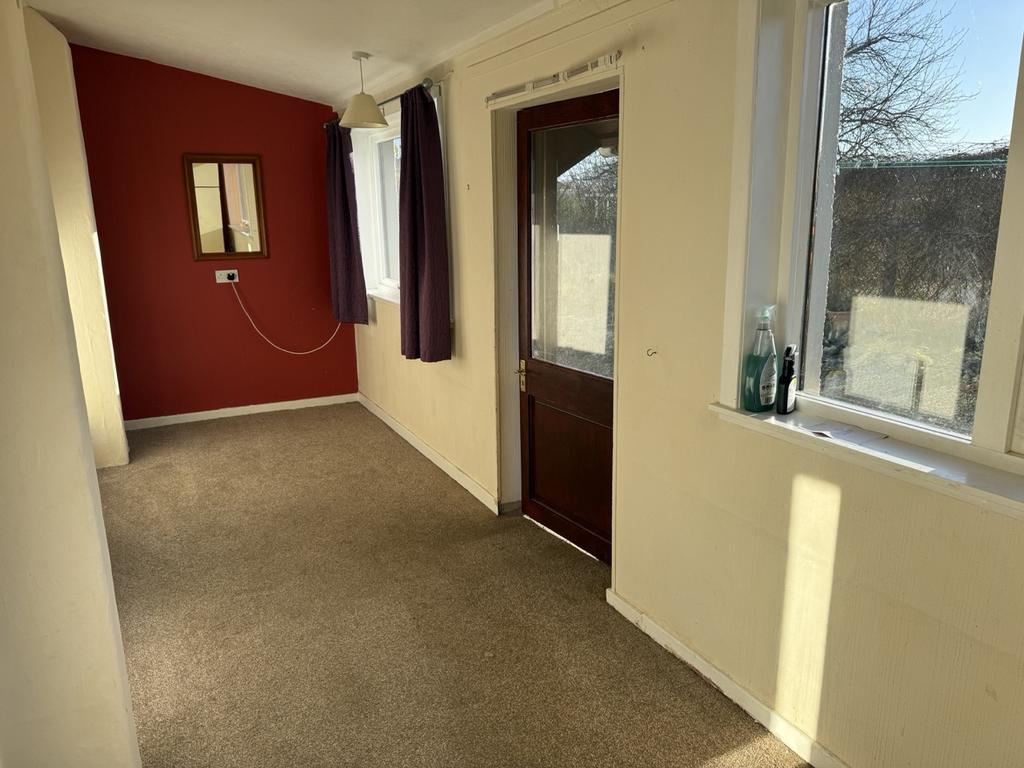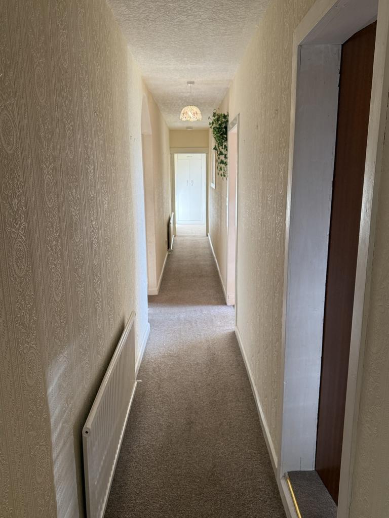 Loft access hatch. Cupboard housing the water cylinder. Double, shelved cupboard with storage above. Glazed door to the front vestibule. Two radiators.