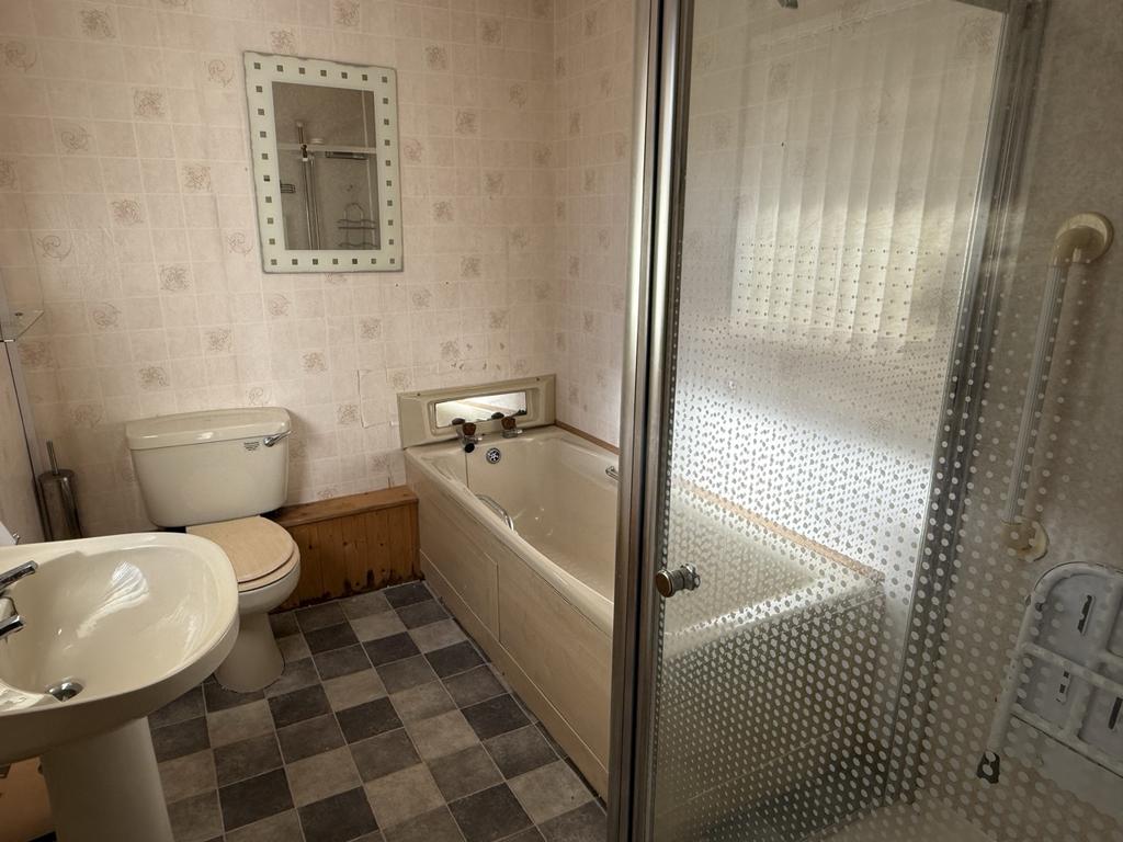 Three piece suite with separate shower cubicle. Wet walled within the shower cubicle. Radiator. Vinyl floor covering. Window to the rear of the property.