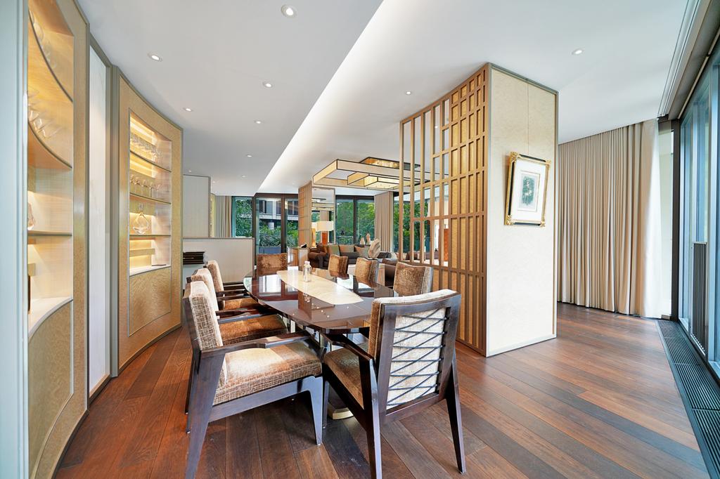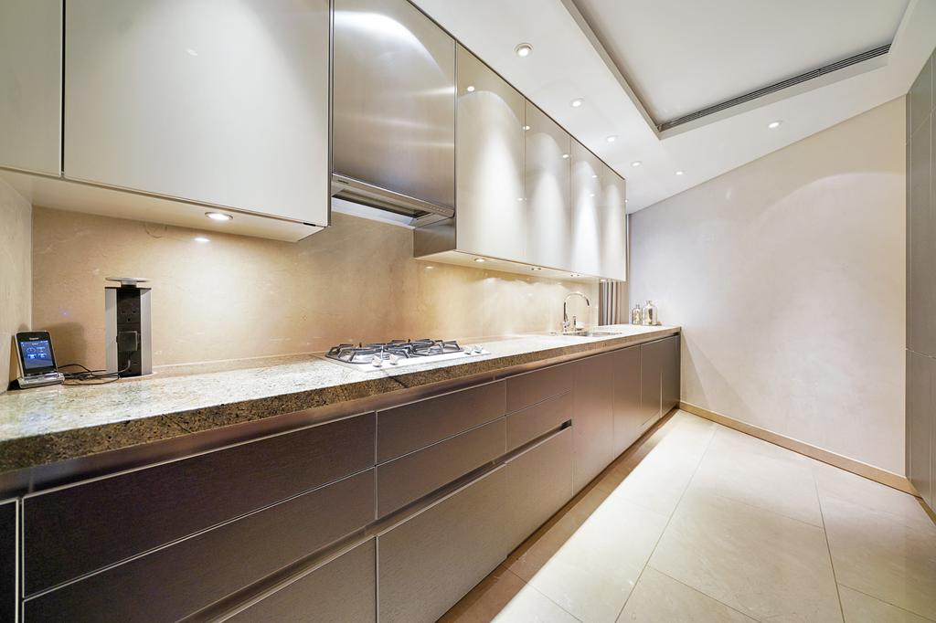 A spacious reception room with floor-to-ceiling windows opens onto a private balcony. The Gaggenau-fitted kitchen, hidden study, and second reception/media room enhance the living space. Each en-suite bedroom features a spa-like marble bathroom, complemented by air conditioning and Lutron lighting.