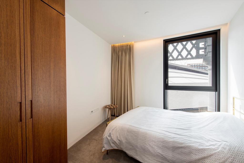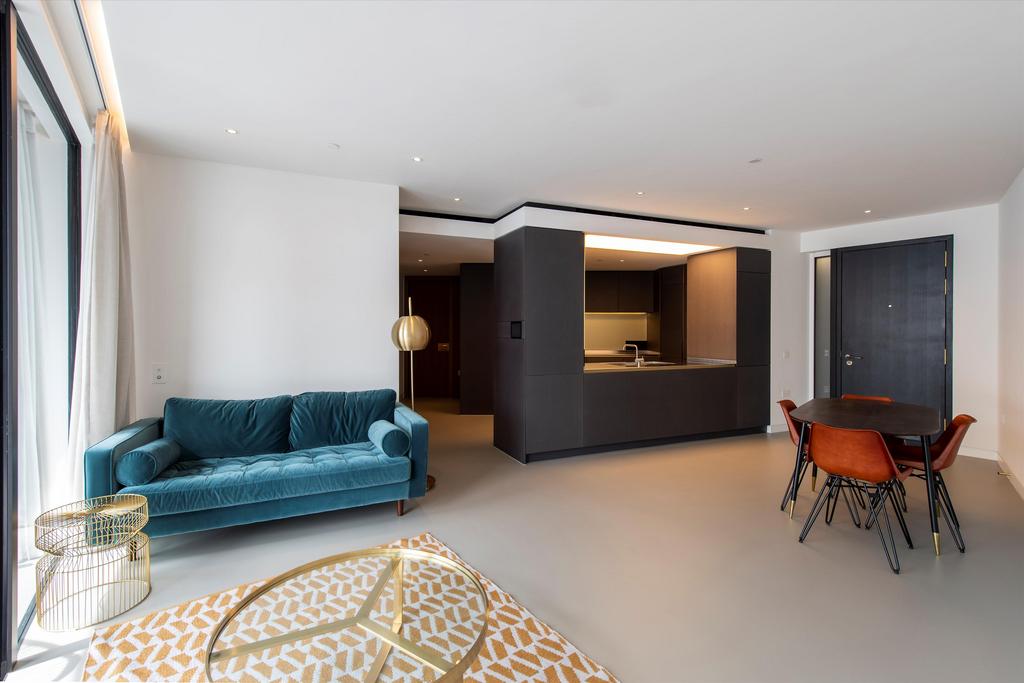 The flat comprises an open plan living area, two modern bathrooms, two double bedrooms with built in wardrobes, fully fitted kitchen and balcony. The bespoke kitchen and bathroom suites feature high quality brassware and a stainless steel finish with a poured resin floor. Residents' will benefit from a 24 hour concierge service, business suite with conference room, rooftop garden, entertainment suite with bar, private dining room, catering facilities and 14-seat screening room, fitness suite, spa with hydro pool, steam room and sauna. EPC: B. The property is available to rent on a furnished basis