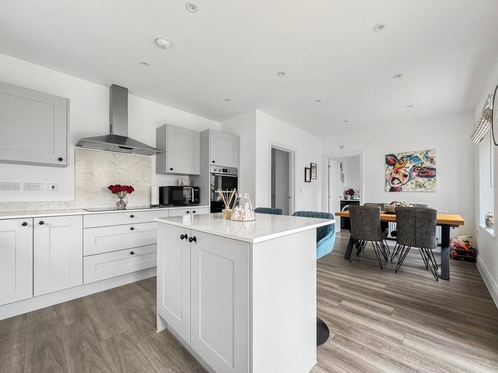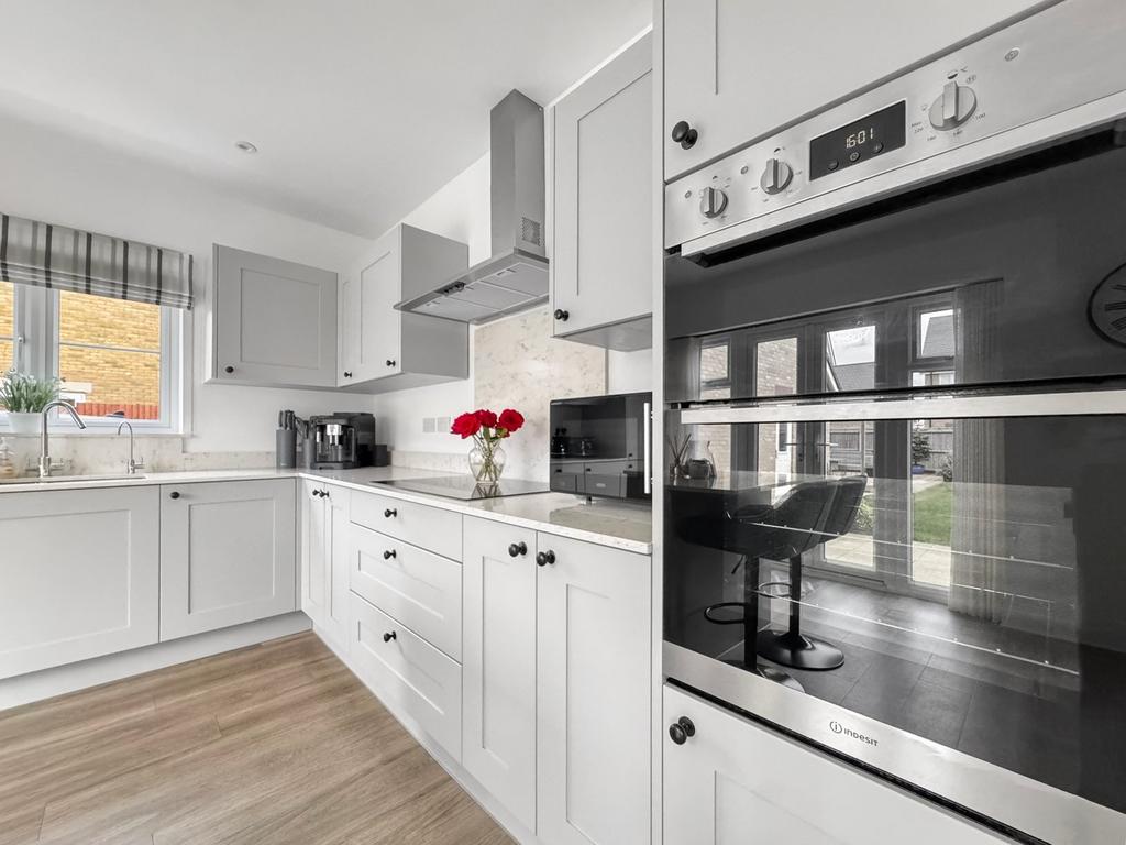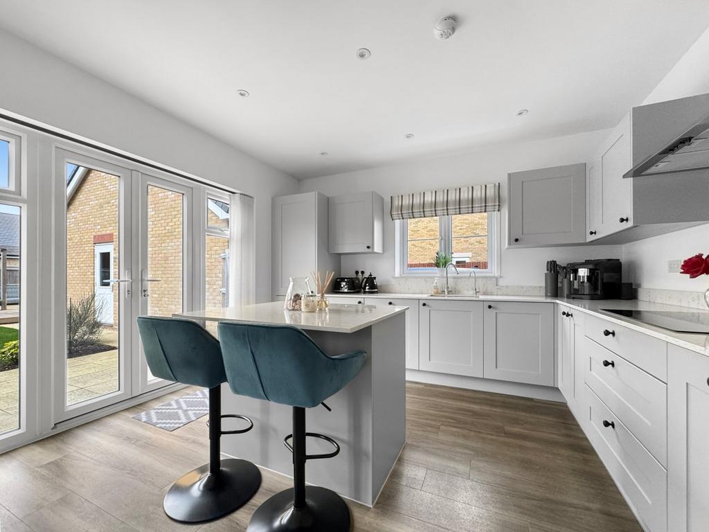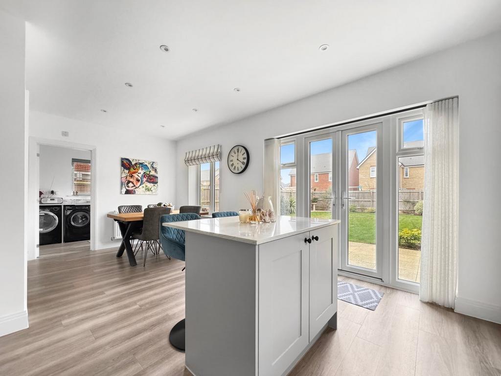 20' 5" x 12' 2" (6.22m x 3.71m) French doors to rear garden, windows to rear and side, LVT flooring throughout, radiator, door to utility room, a comprehensive range of fitted units and drawers with worktops over, inset sink and drainer with water softener, inset hob with extractor over, integrated dishwasher, integrated fridge/freezer, fitted double oven, central breakfast island with seating recess.