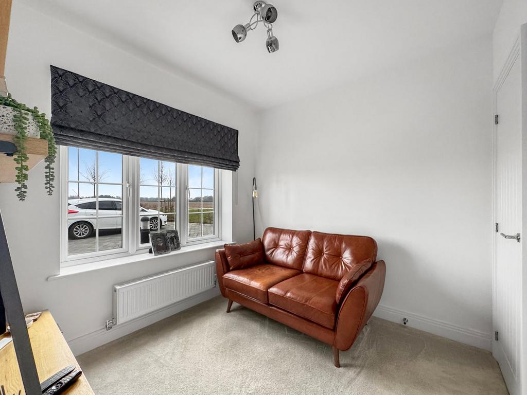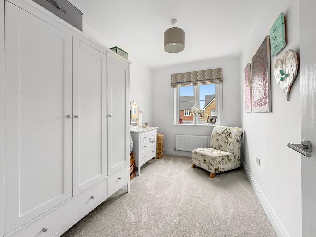 11' 11" x 11' 10" (3.63m x 3.61m) Window to front with field views, radiator, fitted wardrobe and door to.