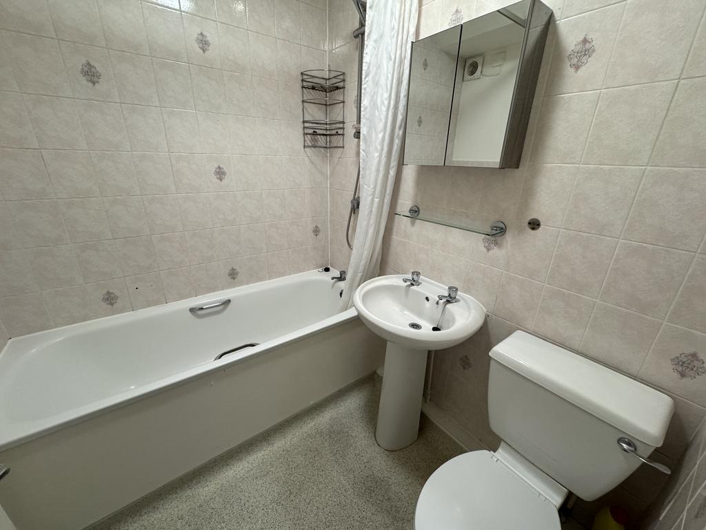 Bathroom. Gas central heating radiator, bath with over bath shower, WC, wash hand basin.