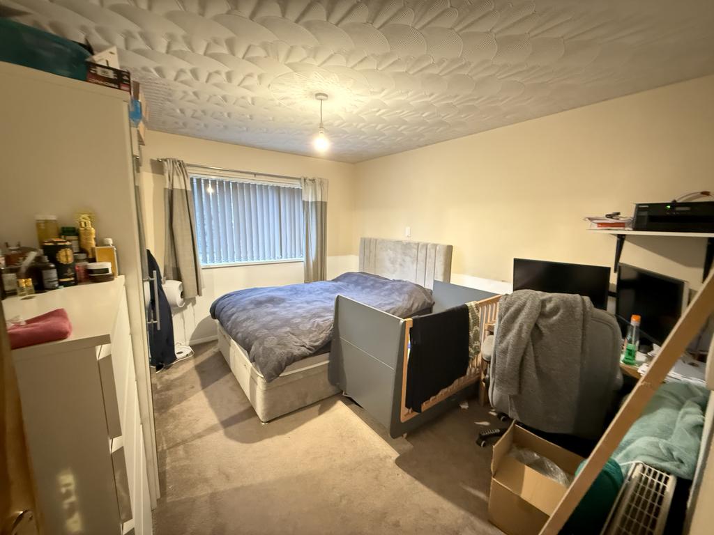 * Bedroom 2 (2.35m x 3.57m) - A well-sized bedroom with painted walls, a radiator, a storage cupboard, and carpeted flooring.