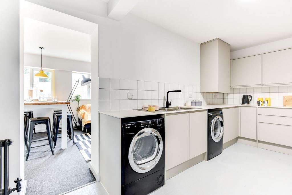 Modern monochrome tones throughout the house create a calming workspace, whilst large communal areas allow for socialising and hosting.