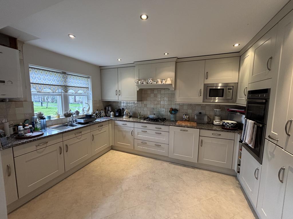 Kitchen (13'1 x 8'7) Having a range of base and wall units, built in oven, hob and hood, integral fridge freezer and dishwasher, stainless steel sink unit with mixer taps and integral microwave and gas fired boiler.
