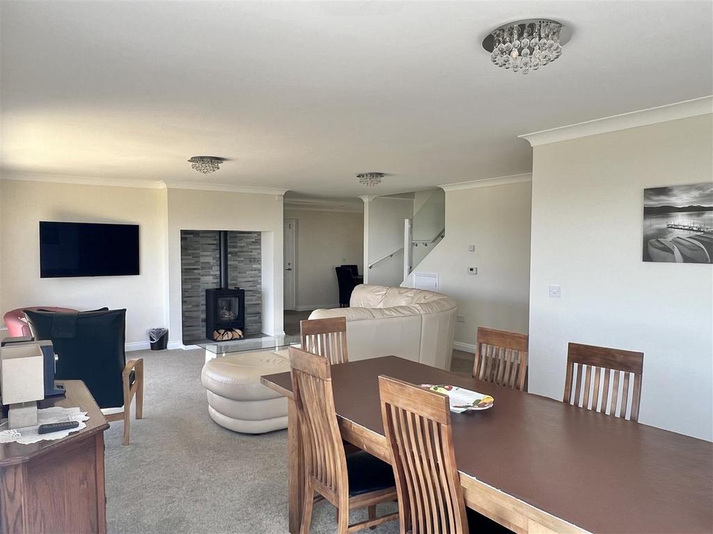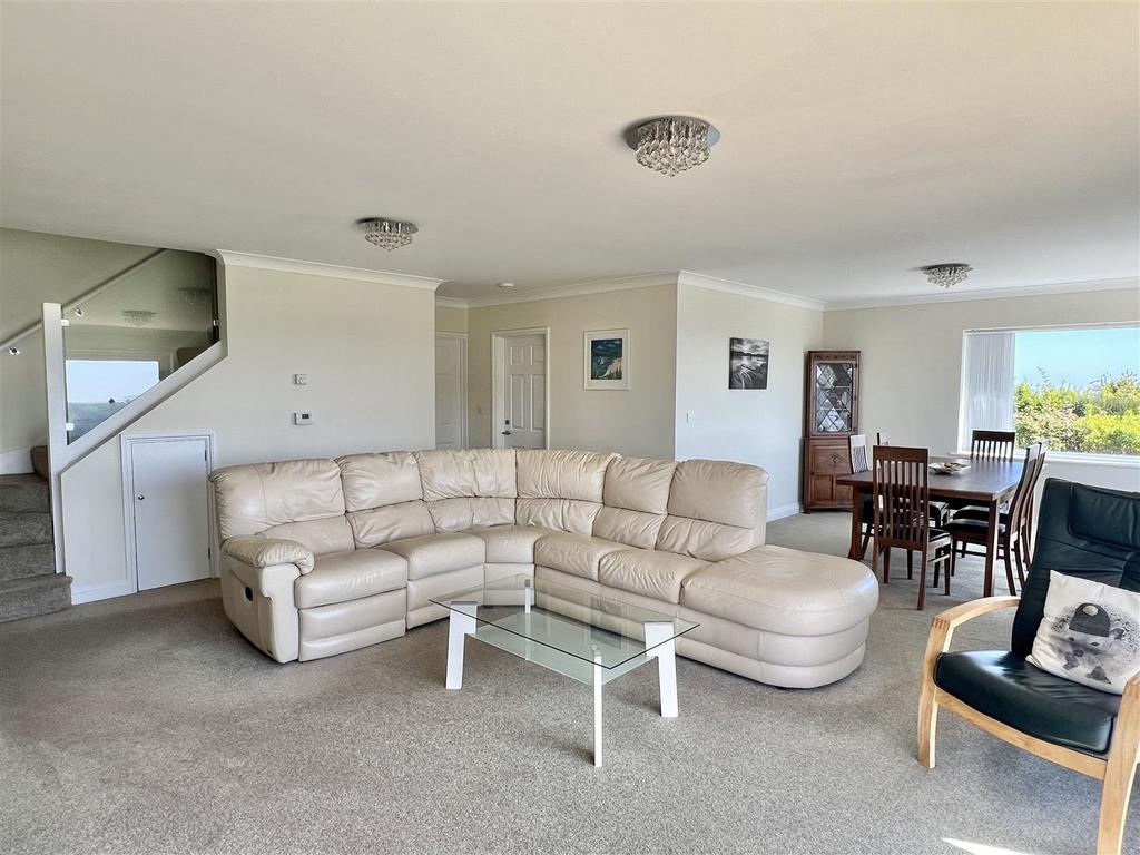 Open Entrance Hall: - A large and welcoming area incorporating a weaved bedded welcome mat and warm coloured carpeted flooring which continues through into the ground floor living area. A glazed panelled door opening through into a large and spacious open plan feel. Thoughtfully designed, the main living space is to the front where you can enjoy the wonderful coastline and bay views from two large corner positioned double glazed windows and the addition of a set of double glazed sliding doors out onto the front sun terrace.