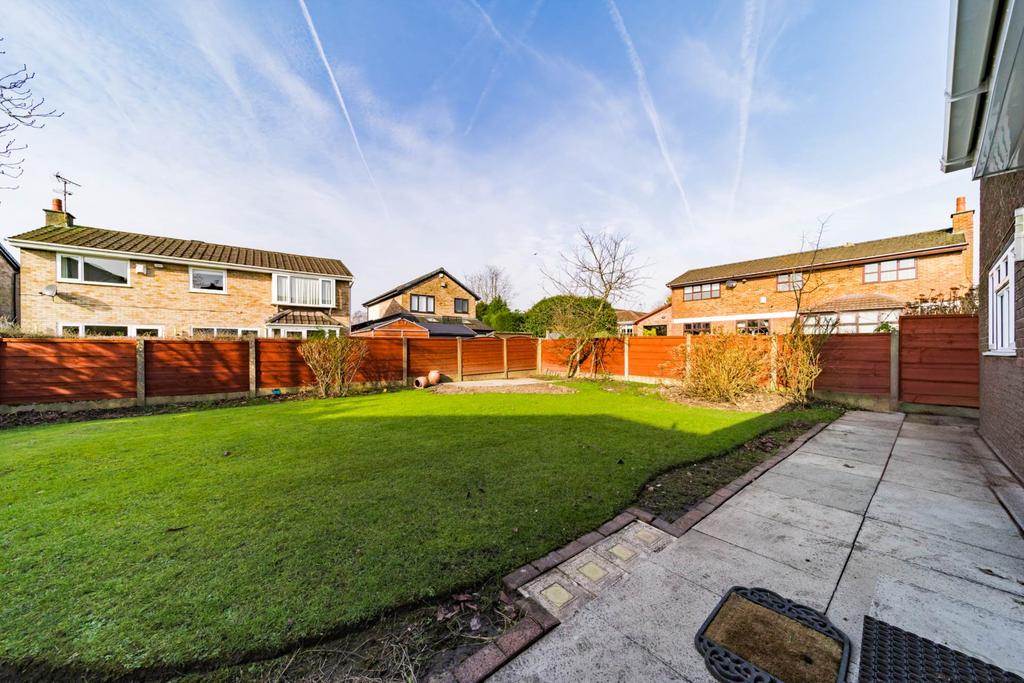 To the rear of the property is a paved patio area which opens to a lawned garden with shrubbery borders. There is access at either side of the property to the front where there is a smaller lawned garden with block paved double driveway.