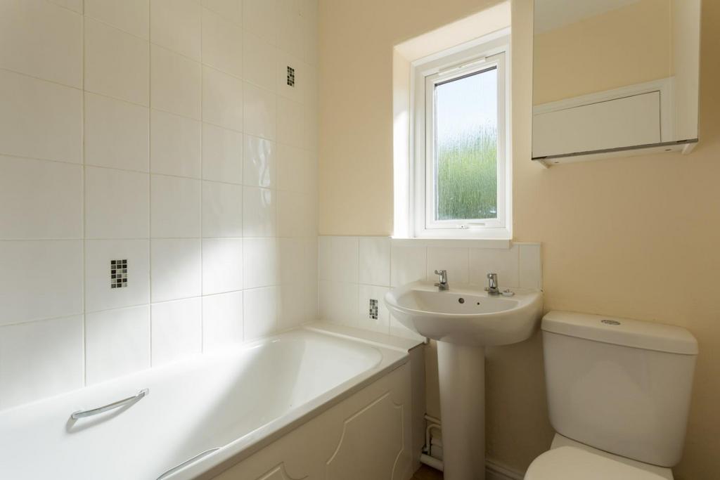 Two reception rooms, one with electric fire, one with stylish log burning stove and each with large windows overlooking the gardens. Three bedrooms (two doubles with fitted wardrobes) and recently refitted family bathroom to the first floor.