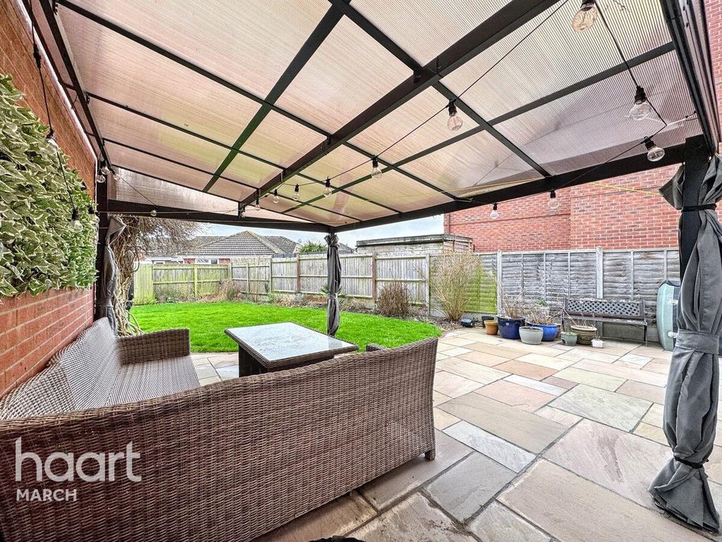 Double glazed window to rear, double glazed patio doors to rear opening out to rear garden, feature fireplace with wooden surround and marble effect hearth housing coal effect gas fire, two radiators.